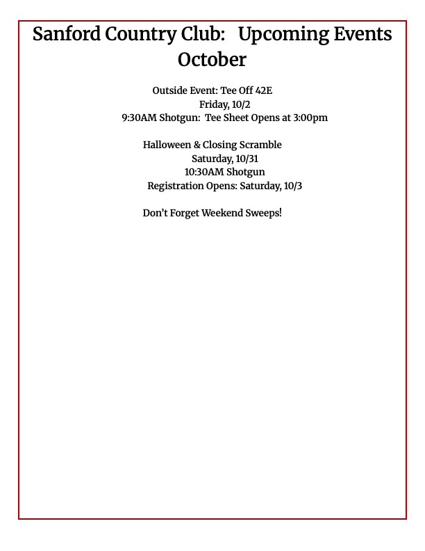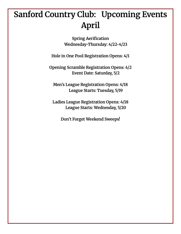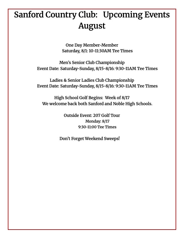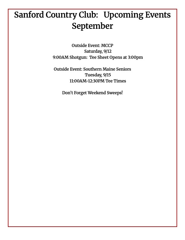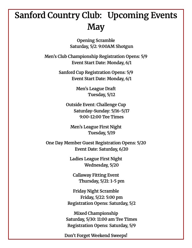 Sanford Country is proud to welcome all its friends and family for an exciting 2026 season. SCC is the proud host of the 2026 Maine Amateur and the Ladies Tri States.